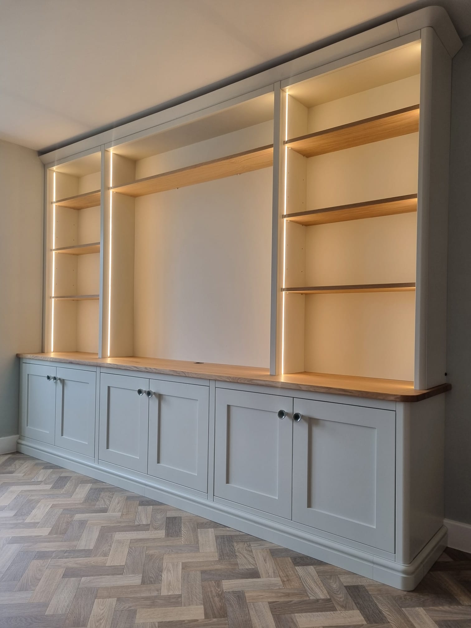 A 3 meter bespoke media cabinet made & fitted in Botesdale, Suffolk.