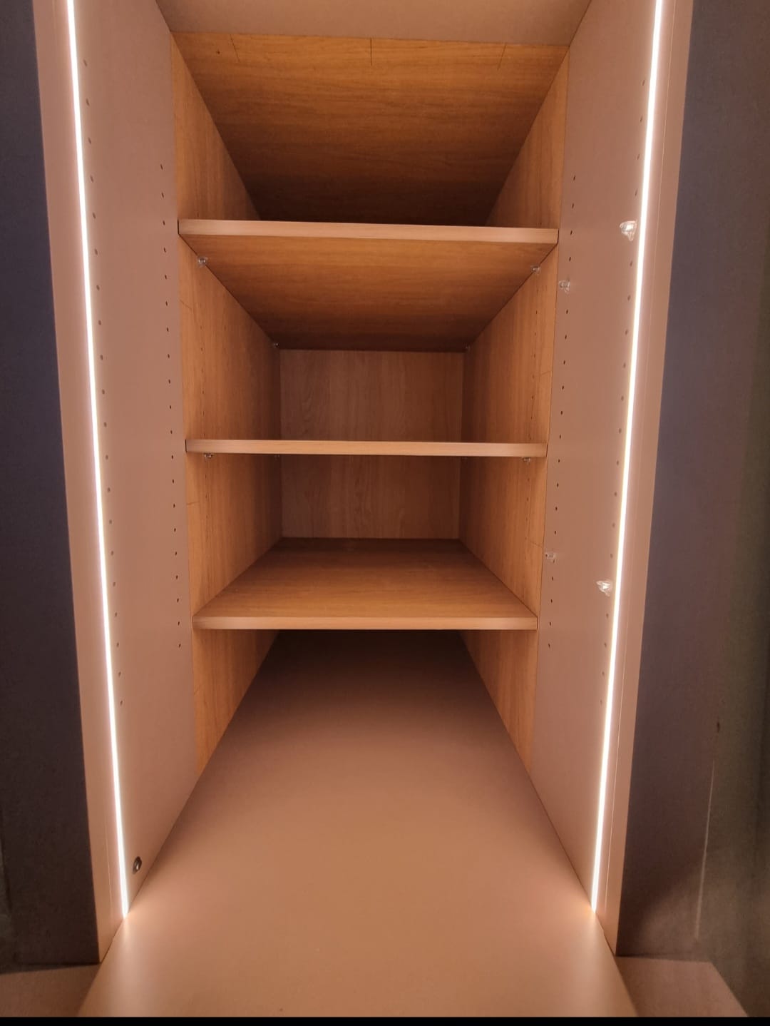 We integrated subtle LED strip lighting to illuminate the space, and included internal drawers for better organisation. The cabinet also contains a unique secret: a hidden storage compartment concealed behind a discreet, removable back panel. This offers a secure and clever space for valuables or infrequently used items.